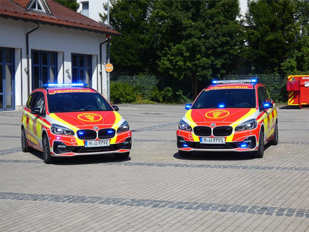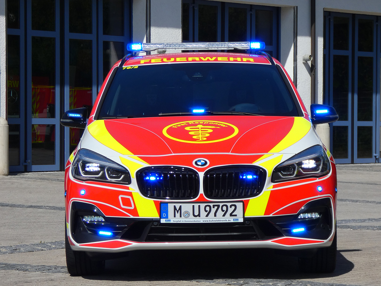 Als Basis dienen zwei BMW 2er Gran Tourer, welche nach sorgfältiger Prüfung am Besten zu den Anforderungen der ehrenamtlichen Helfer passen. Bei der Auswahl der Sondersignalanlage war das wichtigste Kriterium die Sicherheit der Nutzer, so verwundert es auch nicht, dass eine Vielzahl an optischen und akustischen Elementen zum Einsatz gekommen sind.