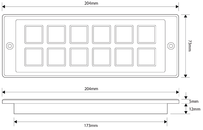 Overall dimensions: 204mm (w) x 73mm (h) x 17mm (d)