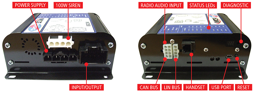 The MCS-8 Universal Controller consists of a main control box which contains everything required to control a vehicle mounted hazard warning system, typically comprising rooftop lighting, secondary hazard warning lights and audio equipment. It has 4 high power outputs, 4 dual purpose inputs and medium power outputs and 6 dedicated inputs.
