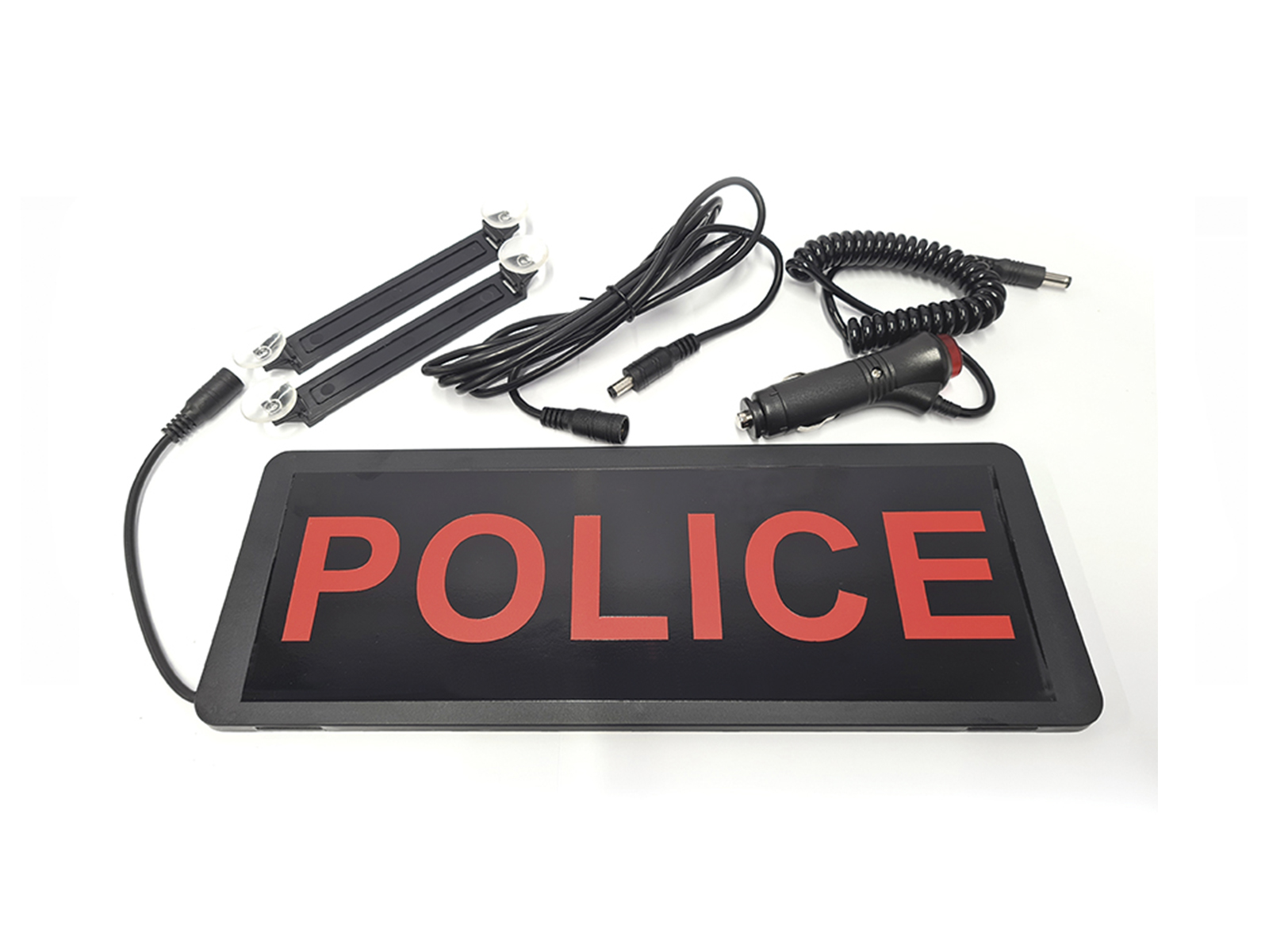 The Illuminated Rear LED Sign is supplied complete with a 12v push button power plug, 2 metre extension cable and 1 pair of suction mount brackets.